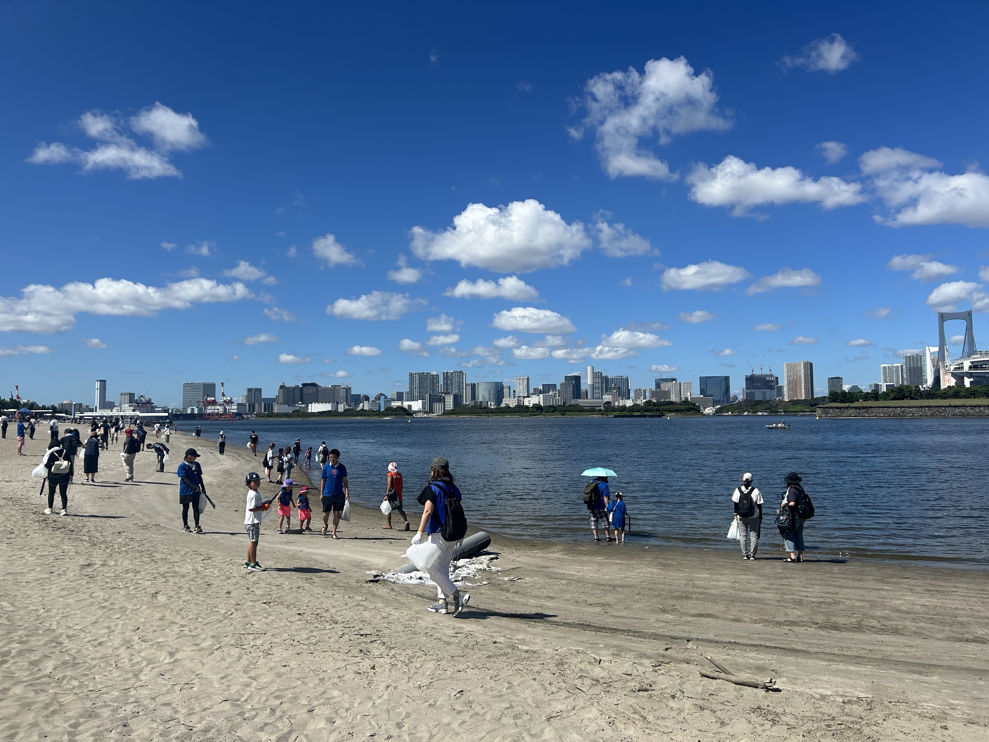 清掃活動参加者のほかにも、海浜公園のビーチには家族で休日を過ごす方や、レジャーに訪れる方も多くいらっしゃいました。